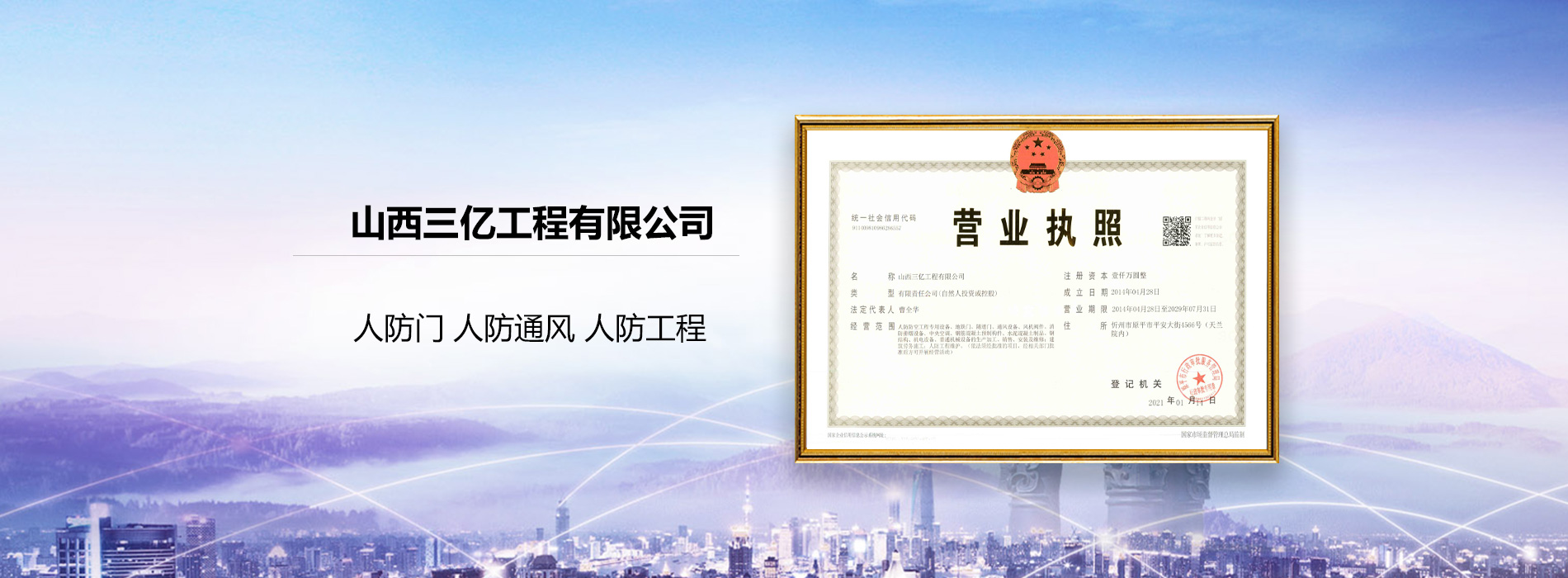 山西三億工程有限公司是經(jīng)人民防空辦公室批準的人防工程的生產(chǎn)和定點安裝企業(yè)。公司及研發(fā).制造.銷售.服務于一體,產(chǎn)品通過 ISO9001 質(zhì)量認證,并列入《人民防空設(shè)備產(chǎn)品目錄》。